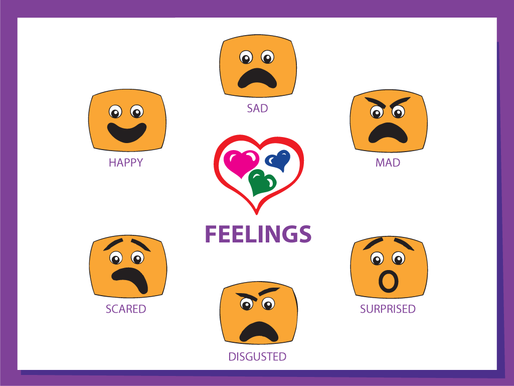 When asking a child how he or she feels or asking how they think a character feels, the answer is often happy, sad or mad. Occasionally you could get an answer like "scared." MindWing Concepts' manuals for Braidy the StoryBraid® as well as It's All About the Story portray the 6 universal feelings (right). We encourage children to use synonyms for these "feelings" words that also indicate the degrees and nuances of happiness, sadness or anger that they themselves or a character might be feeling. Below are lists of synonyms for the six universal feelings.